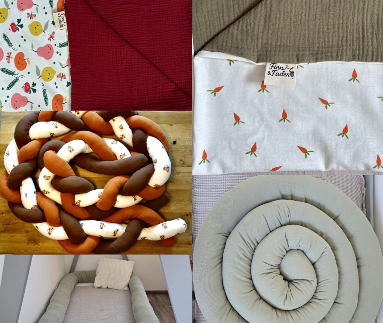 Alles für einen geborgenen Start ins Leben: In unserem liebevoll zusammengestellten Erstausstattungsangebot findest du handgenähte Lieblingsstücke wie kuschelige Babydecken, weiche Pucksäcke und stilvolle Wickeltischumrandungen – aus hochwertigen Materialien gefertigt und perfekt auf die Bedürfnisse deines Babys abgestimmt.